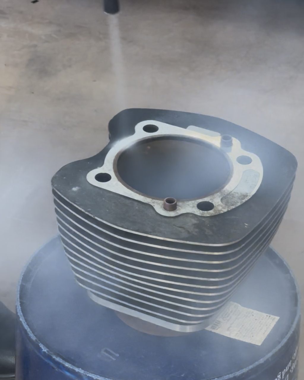 そこで、私たちの「ドライアイス洗浄」サービスをぜひご利用ください!ドライアイス洗浄は、ブラシや手の届かない隙間まで確実に汚れや油分を取り除き、エンジン表面を新たに生まれ変わらせます。しかも、部品表面に傷をつけることがなく、安心してご利用いただけます。ただし、劣化した塗装やステッカーには注意が必要です。