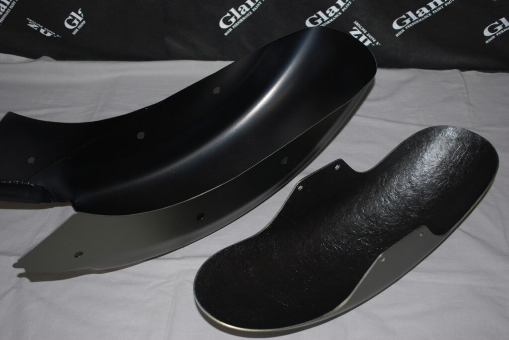 フロントフェンダーはFRP製品で、リヤフェンダーはスチール素地の状態からのペイントでした。