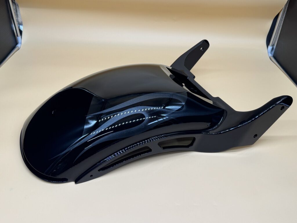 社外のリヤフェンダーもミッドナイトファイヤーストームでペイントしました。