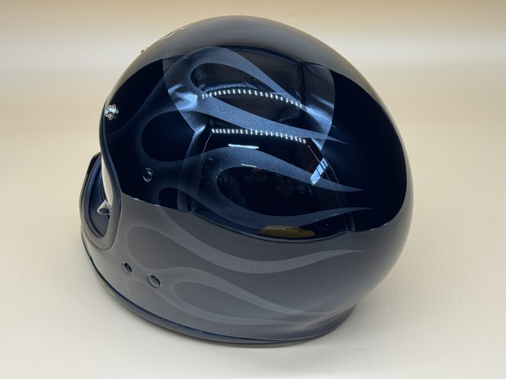 ミッドナイトファイヤーストームのデザインカラーに合わせてヘルメットをペイントしました。